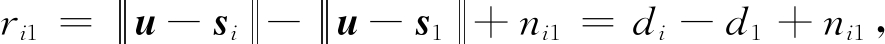 式中:ri1为TDOA测量值;