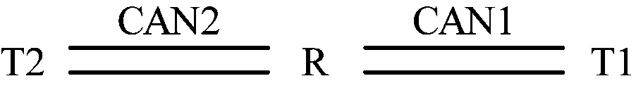 本文以图3所示的CAN总线模型为例进行描述,其中T1,T2为CAN总线终端,R为CAN总线中继器。总线CAN1,CAN2分别接入中继器中CAN收发器U1,U2。因CAN总线模型两侧完全对称,在单端发送模式下,T1或T2作为发送端并无差别,本文设定T2作为发送端,T1作为接收端。
