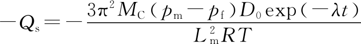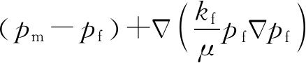 根据质量守恒定律可知,单位体积的煤体裂隙内游离瓦斯含量随时间的变化量等于单位时间裂隙流出的瓦斯含量与煤基质扩散的瓦斯含量之和,从而可得裂隙瓦斯渗流控制方程: