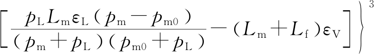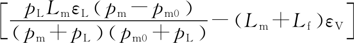 式中:φm为煤基质孔隙率;φm0为初始煤基质孔隙率;Kp为煤基质孔隙体积模量;Lf为裂隙宽度;Lm为煤基质宽度;pm0为初始煤基质瓦斯压力;εV为煤层体积应变。