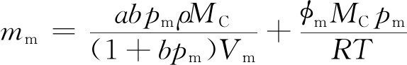 式中:mm为单位体积煤基质瓦斯含量;a为Langmuir体积常数;b为吸附平衡常数;ρ为煤体密度;Vm为气体摩尔体积。