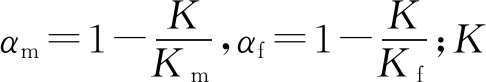 为泊松比;ui,uj分别为煤体在i,j(i,j=x,y,z)方向的位移;αm,αf为Biot's系数,