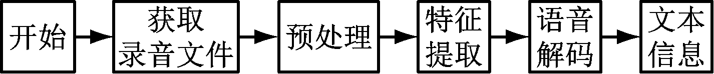 语音识别技术通过语音设备捕捉语音信号,经过一系列处理后,将语音信号转换为相应的文本或命令[12]。语音识别技术主要包括特征提取、模式匹配和参考模式库。首先对应急接警电话进行录音,并采用端点检测和语音增强方法对录音信息进行预处理。特征参数直接影响语音识别质量,梅尔频率倒谱的频带划分是在梅尔刻度上等距划分的,比其他对数倒谱频带更接近人类听觉系统,因此,对处理后的语音采用MFCC(Mel Frequency Cepstrum Coefficient, 梅尔频率倒谱系数法)进行特征向量提取,得到语音特征矩阵,并依次和语言模型里的模板进行相似度对比,将相似度最高者作为识别结果输出,最后返回文本信息。语音识别流程如图2所示。
