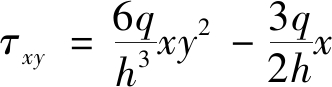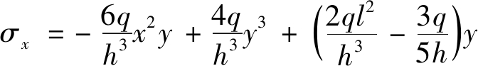 假设厚硬基本顶各向同性,由弹性力学可得梁内任一点(x,y)(x∈(-l,l),y∈(-h/2,h/2))沿x方向正应力σx、沿y方向正应力σy和剪应力τxy: