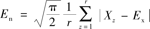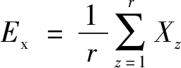 云模型的整体特性可以用云的数字特征来反映,具体包含期望Ex、熵En和超熵He。Ex是云滴在论域空间分布中的数学期望,反映云的重心位置;En一方面反映云滴的离散程度,另一方面决定了论域中可被定性概念接受的云滴的确定度,由定性概念的随机性和模糊性共同决定;He是熵的熵,是熵的不确定性度量,对云滴的厚度和分散程度有直接影响[11-12]。某一样本点Xz(z=1,2,…,r,r为样本数)的云数字特征计算过程如下[13]。