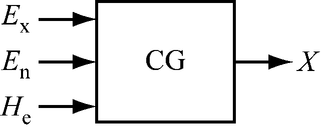 云发生器是云模型中负责实现定性概念与定量数据之间相互转换的算法,是云模型中最重要、最关键的内容。其包括正向云发生器和逆向云发生器。正向云发生器实现定性到定量的转换,是从内涵到外延的转换;逆向云发生器与之相反[10]。云发生器如图1所示。