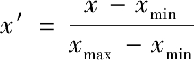 (3) 对参考序列和比较序列进行无量纲化处理。采用MIN-MAX标准化公式(式(5))将指标数据x转换为纯量x′。