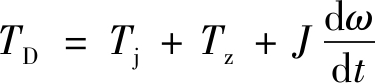 式中:TD为电动机作用在滚筒上的拖动力矩,N·m;Tj为提升系统所受的静力矩,N·m;Tz为运行过程中的阻力矩,N·m;J为折算到提升机滚筒上的总转动惯量,kg·m2;ω为角频率,rad/s;t为时间,s。