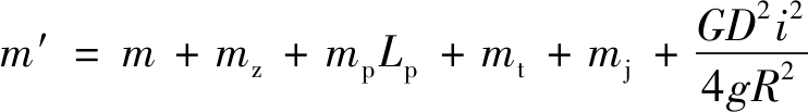 在提升过程中,各运动部件的运动情况复杂,对各个转动惯量单独进行折算很不方便,为了简化运算,将提升系统其他转动部件质量和电动机自身转子质量都变位到滚筒表面,总变位质量m′计算公式为