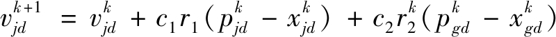 式中:j表示第j个粒子;d为粒子维度;k为迭代次数;