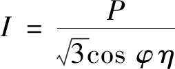 式中:ΔU为电压降;Un为额定电压;f为电压频率;I为电动机额定电流;P为电动机功率;cosφ为功率因数;η为效率;R为电缆单位长度电阻;l为供电距离。