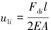 式中:Fdi为第i个顶部拱形梁承受的顶板载荷,kN;l为立柱长度,m;E为立柱弹性模量,MPa;A为立柱截面积,m2。