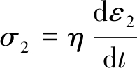 (2) Maxwell模型由一个阻尼元件和一个弹簧元件串联而成。弹簧元件的应力σ1和应变ε1的关系为
