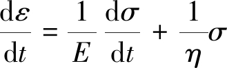 模型中2个元件所受的应力相同,即σ1=σ2=σ,总应变ε为ε1,ε2的和,结合式(2)、式(3)可得