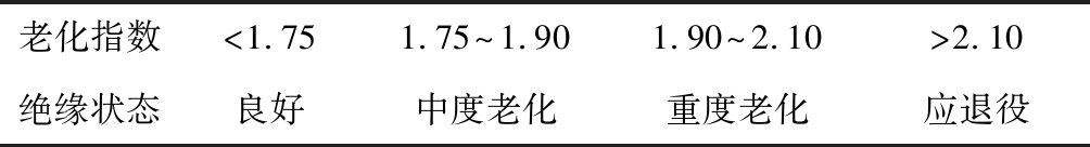 参考文献[14],电缆试样老化指数与绝缘状态的关系见表2。