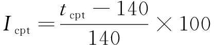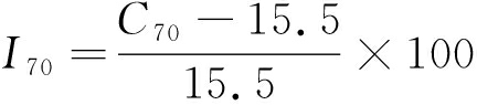 式中:I70为煤样温度为70 ℃时煤样罐出气口氧气浓度指数;C70为煤样温度达到70℃时煤样罐出气口的氧气体积分数,%;Icpt为煤在程序升温条件下交叉点温度指数;tcpt为煤在程序升温条件下的交叉点温度,℃;I为煤自燃倾向性判定指数;φ为放大因子,φ=40;