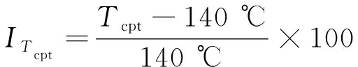 式中:ICO2为煤温70 ℃时煤样罐出气口氧气浓度指数;ITcpt为煤在程序升温条件下交叉点温度指数;Ø为放大因子,本文取Ø=40;φCO2为低温氧化阶段的权数,本文取φCO2=0.6;φTcpt为加速氧化阶段的权数,本文取φTcpt=0.4。