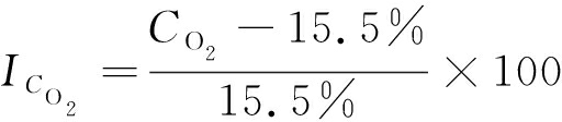根据测定的CO2和Tcpt,通过式(1)—式(3)可得煤自燃倾向性判定指数I: