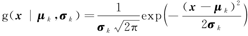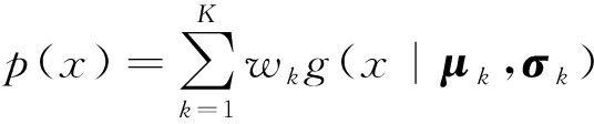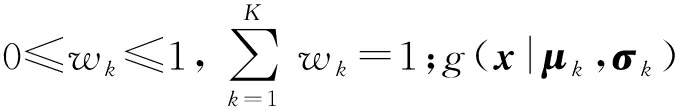 式中:K为成分个数,决定高斯混合分布的阶数,K≥1;wk为混合权重系数,确定各成分的权重,