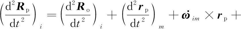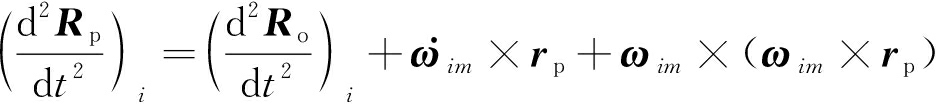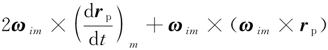 力学补偿法的基本思想是根据动力学原理计算出干扰加速度,并从加速度计的输出信号中将干扰加速度分量补偿掉。当已知杆臂长度rp、角速度ωim和角加速度