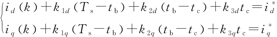 式中:k1d—k3d和k1q—k3q分别为电压空间矢量V1—V3对应的d,q轴电流变化斜率;iq(k)为当前控制周期的q轴电流采样值。