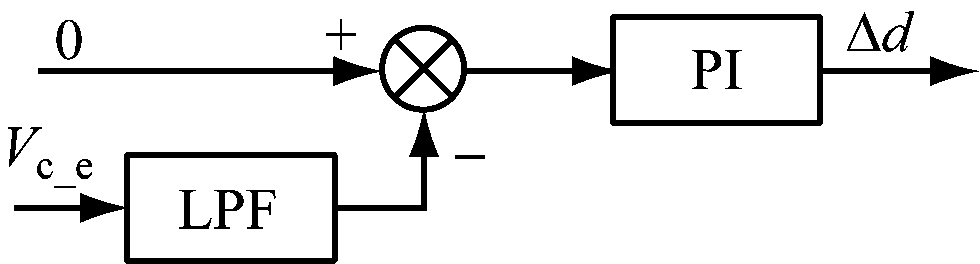 电容电压平衡控制策略如图5所示。采用低通滤波器(Low Pass Filter,LPF)提取电容电压差值Vc_e中的直流分量,并与参考值0作差后经过比例积分(Proportional Integral,PI)控制器得到补偿量Δd,通过调节向ia中注入的直流分量实现上下直流母线电容电压平衡。