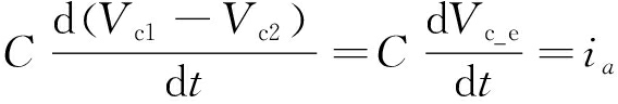 分别采用电压空间矢量V1,V3时对应的a相相电压分别为2Vc2/3,-2Vc1/3,因此在电压空间矢量V1作用下能增大ia,而在电压空间矢量V3作用下能减小ia。结合式(2),可通过向Db,Dc中叠加补偿量Δd来调节V1,V3作用时间,从而实现电容电压平衡。