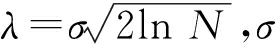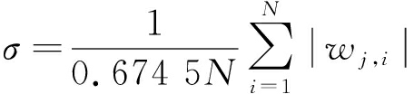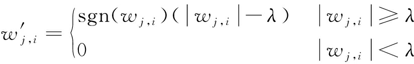 分别为降噪滤波前后的第j(j=1,2,…,J)层第i(i=1,2,…,N,N为第j层双树复小波系数的个数)个双树复小波系数;λ为阈值,
