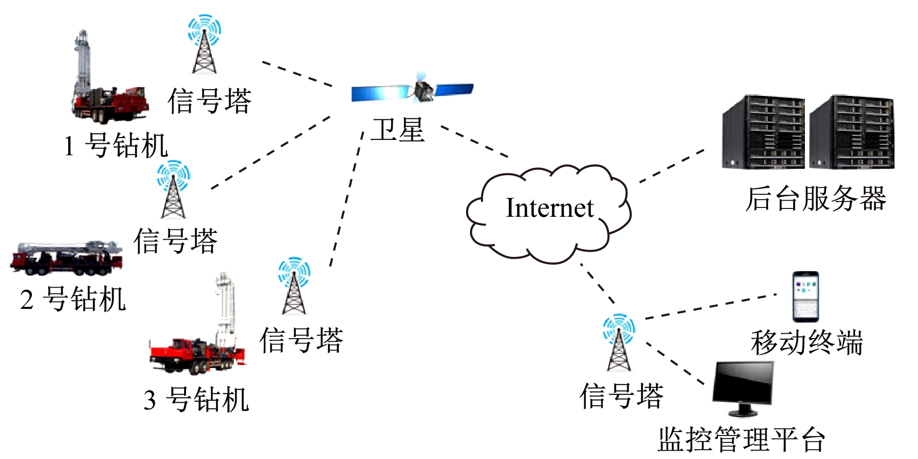 煤层气车载钻机作为煤层气开采的重要设备之一,其结构组成复杂,工作环境恶劣,信息化水平较低,导致钻机现场施工人员与制造商沟通信息不对等,技术人员无法异地读取钻机钻进数据,造成钻机维修周期长、维护成本高,影响钻机施工效率和质量。利用数字化、网络化思想设计远程监控系统,对于实时掌握钻机运行状态、提升钻机服务效率具有重大意义。目前,已有远程监控系统应用于旋挖钻机、石油钻机、井下钻机等[1-5],但存在通用性不强、安装不便、通信抗干扰能力弱等问题。本文设计了一种煤层气车载钻机远程监控系统,可实现钻机实时数据采集、远程数据查看、历史数据存储与回放功能,从而指导现场施工人员正确维护钻机,为钻机性能优化改进提供参考依据。