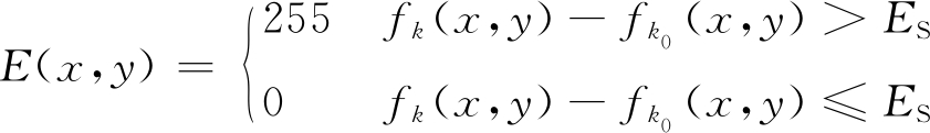 式中:E(x,y)为差分二值图像;fk(x,y)为视频第k帧图像;fk0(x,y)为第k0帧图像,即背景图像;ES为阈值。