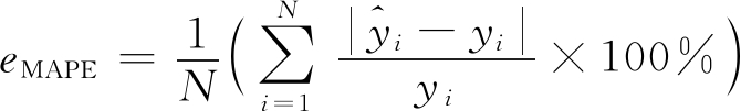 采用均方根误差eRMSE和平均绝对百分误差eMAPE作为模型性能评价指标: