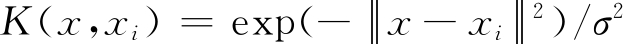 本文选择收敛与学习速度较快、非线性映射能力强的径向基函数[13]作为核函数:
