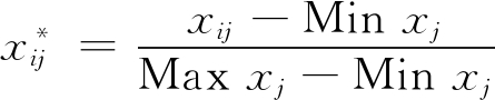 为归一化后数值;xij为第j个变量的第i个样本值;Minxj为第j个变量的最小值;Maxxj为第j个变量的最大值。