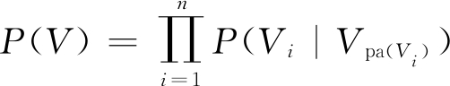 通过联合概率分布对贝叶斯网络中全体节点的关联程度进行定义。对于事件A,设影响其发生的所有事件集合为V=(V1,V2,…,Vn),n为事件总数,则相关的贝叶斯公式为