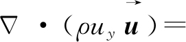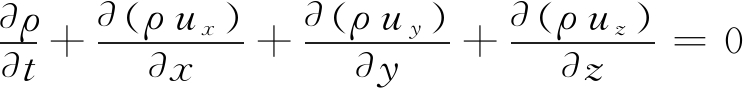 式中:ρ为流体密度,kg/m3;t为经历时间,s;ux,uy,uz分别为x,y,z方向流体速度分量,m/s。