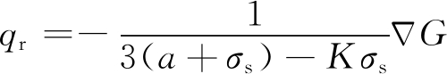 式中:qr为气相与颗粒相辐射换热值,J;a为辐射换热吸收系数;σs为辐射换热散射系数;K为线性各相异性相位函数系数;G为入射辐射强度,W/sr。