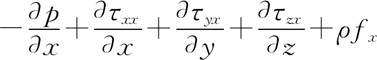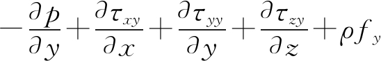 为速度向量;p为流体微元体上的压强,Pa;τxx,τyx,τzx,τxy,τyy,τzy,τxz,τyz,τzz为因分子黏性作用产生的作用在微元体表面的黏性应力分量,Pa;fx,fy,fz分别为x,y,z方向单位质量力,m/s2。