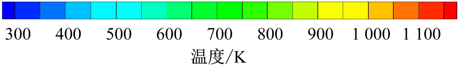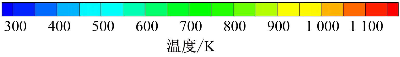 (3) 模拟分析了爆炸反应充分时沿z方向不同截面火焰温度传播特性,结果表明:在z=0.2 m处截面上,距圆心越近则温度越低,说明该区域虽为爆源,但不是爆炸热量释放核心区;z=0.2,0.4 m处截面最外围近壁区域存在约500 K窄环形低温区,这是由于管壁设置温度恒为常温300 K所致;在z=0.86~1.4 m范围的截面上,距圆心越近则温度越高,截面距高温核心区越远则温度越低。数值模拟结果与火焰实际传播情况相符。