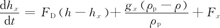 采用颗粒随机轨道模型描述煤尘颗粒在气相中的湍流流动。在笛卡尔坐标系(以x方向为例)下,煤尘颗粒的作用力平衡方程为