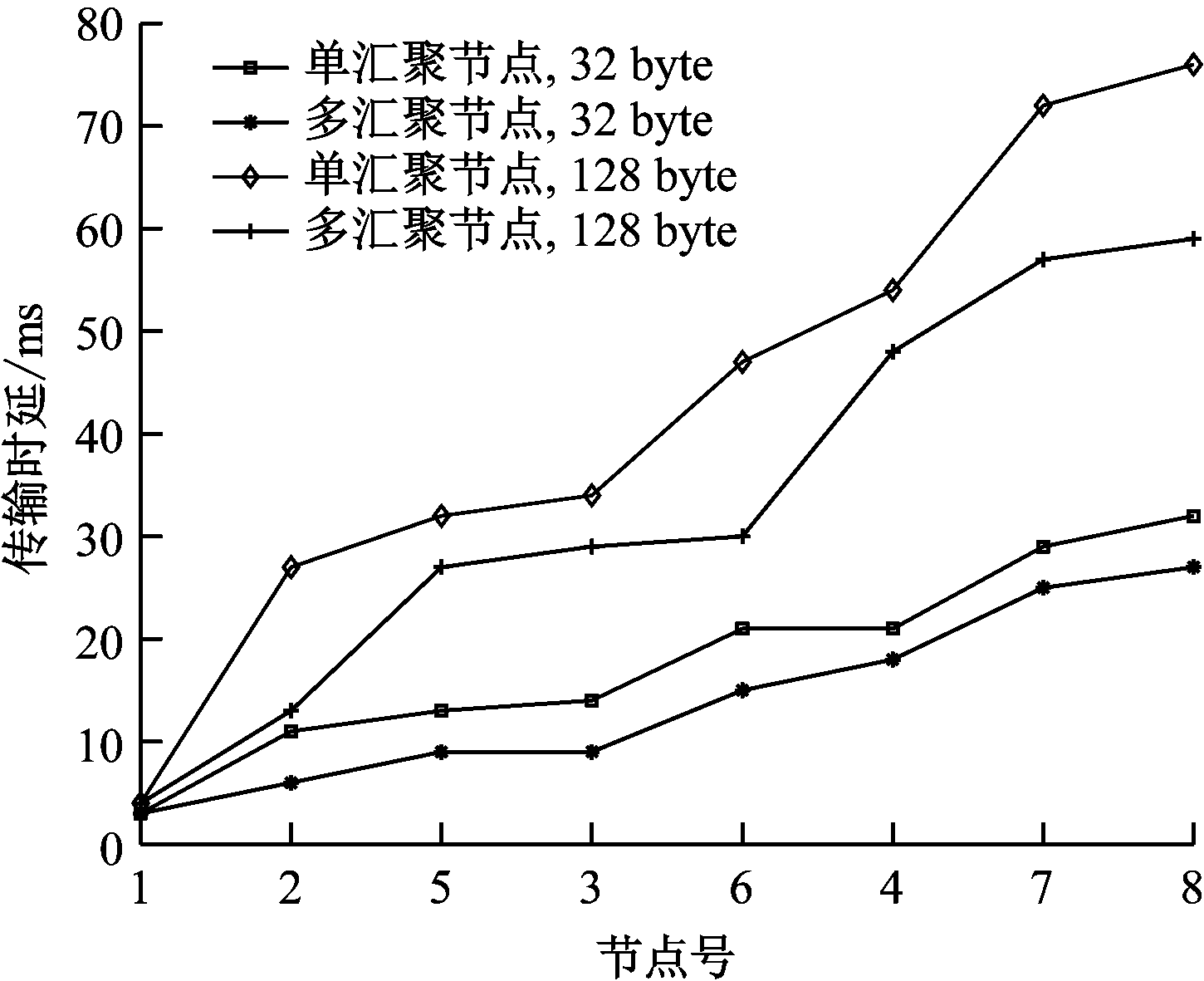 图9 单数据汇聚节点和多数据汇聚节点系统传输时延对比