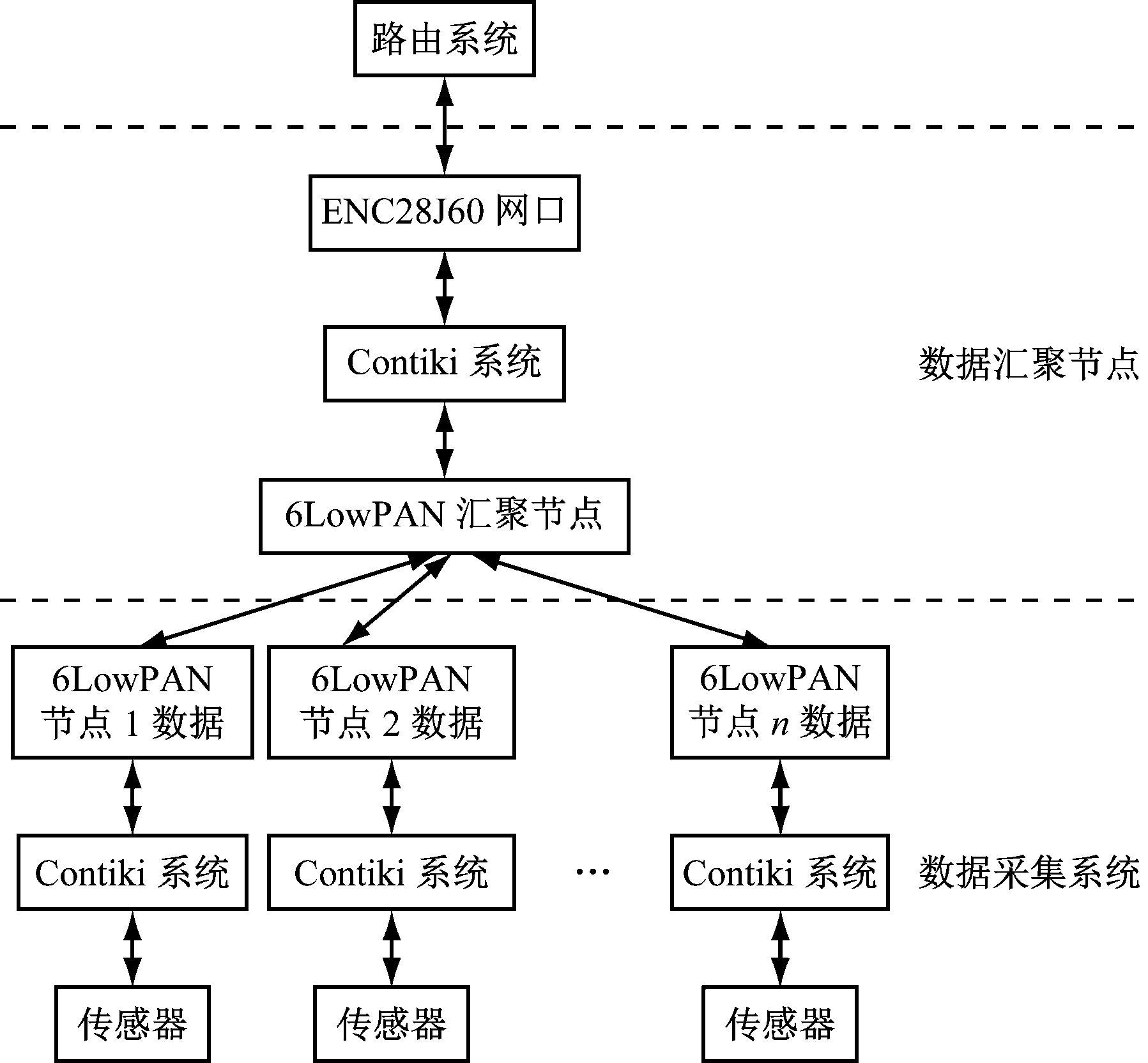 Fig.2 Software architecture of data transmission systm in coal mine underground based on 6LowPAN