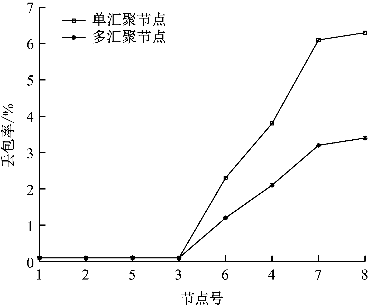 图10 单数据汇聚节点和多数据汇聚节点丢包率对比