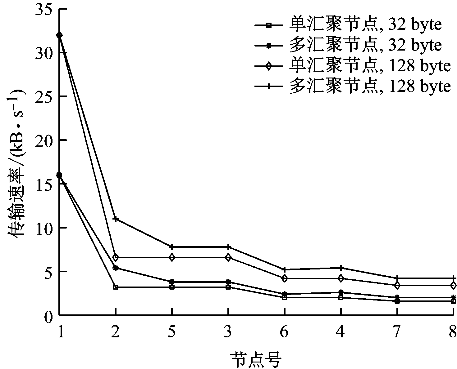 图11 单数据汇聚节点和多数据汇聚节点的 数据传输速率对比