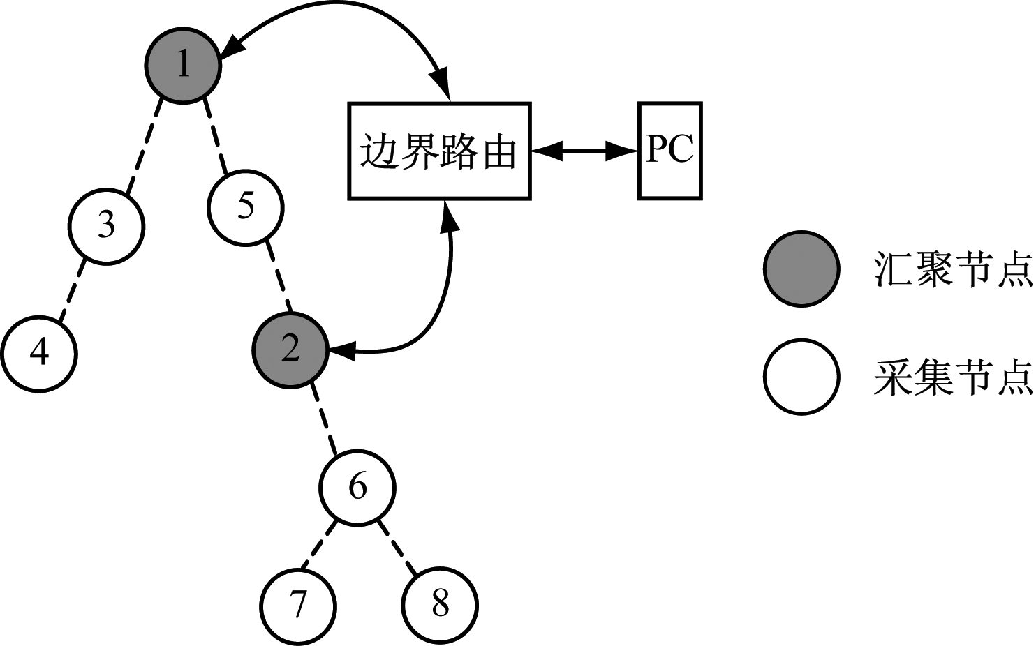 (3) 数据汇聚方式变化。井下多种传感器或继电器均作为数据传输系统中的一个节点,作为信息集中处理的核心部分。由于井下6LowPAN网络的连通性,系统采用多汇聚节点,多个数据汇聚节点均可向数据采集节点发送信号,提高了井下数据传输的可靠性。系统中的传感器、执行器、控制器均朝无线化方向发展,并将逐步替代井下网关的功能。