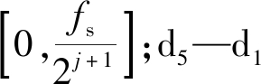 计算可得a5,d5—d1的频率范围分别为0~15.625,15.625~31.25,31.25~62.5,62.5~125,125~250,250~500 Hz。每个子频带上仍是振幅关于时间变化的信号。