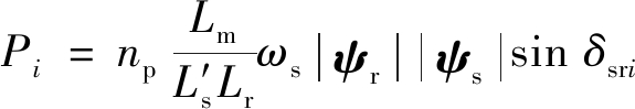 为定子瞬态自感;Lr为转子等效自感;ψr为转子磁链矢量;ψs为定子磁链矢量;ρs,ρr分别为定子磁链矢量和转子磁链矢量相对于A轴空间电角度;δsr为负载角,即ρs与ρr的空间相位差。