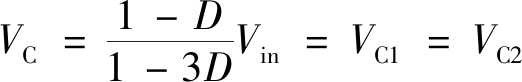 式中:VC1,VC2分别为电容C1,C2两端电压;VL1—VL4分别为电感L1—L4两端电压;VD2,VD5分别为二极管D2,D5两端电压。