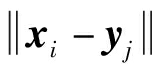 在以上迭代过程中,以煤岩特征光谱向量xi与聚类中心向量yj的欧氏距离