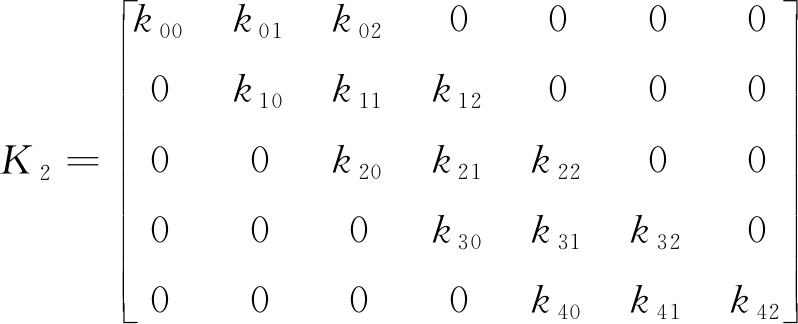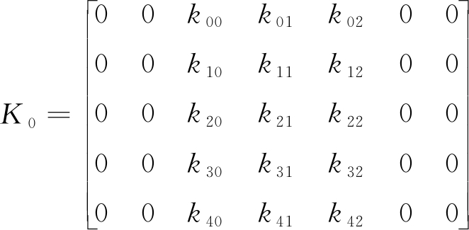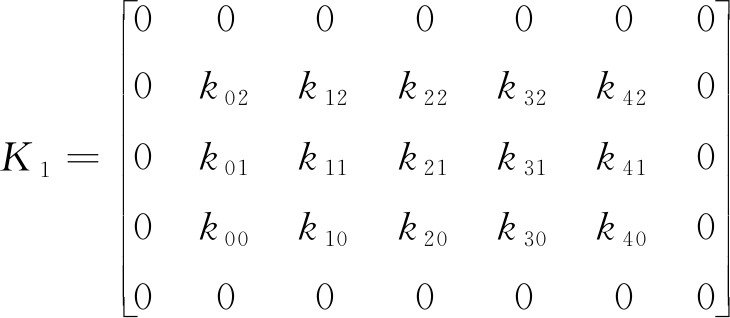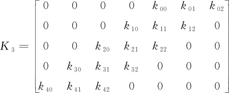 方向模板尺寸的设计对处理精度和速度非常重要,通过实验发现,选用有效尺寸为5×3的模板来匹配4种方向模式效果最优。模板K0—K3内的元素沿4个方向均符合高斯分布,建立的4种方向模板为
