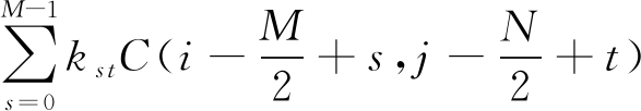 设激光条纹图像大小为r行、c列,C(i,j)(i=0,1,…,r-1;j=0,1,…,c-1)为图像在(i,j)点的像素灰度值。方向模板在图像的第i行进行滑动时,对应第j列的模板卷积值为